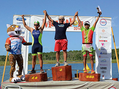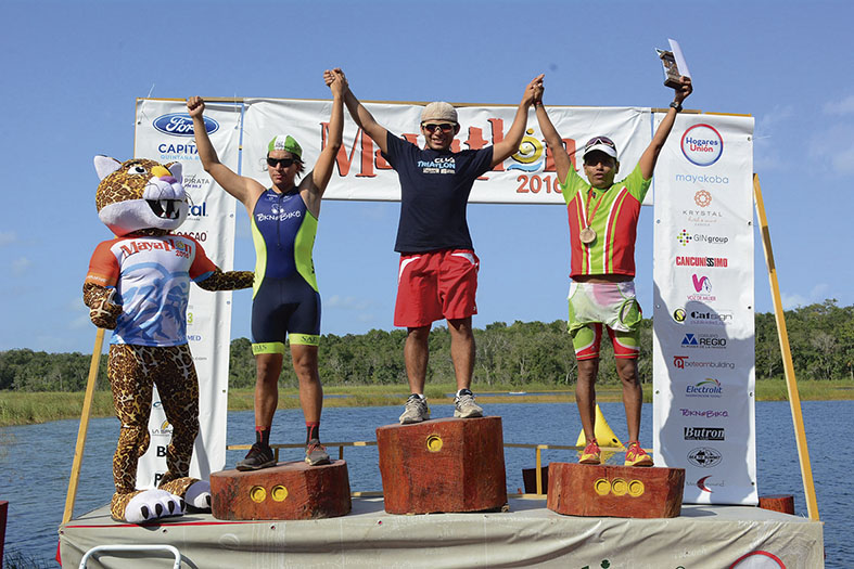 Triatletas de todas las categorías, culminaron con éxito la proeza de nadar mil metros en la laguna, recorrer 21 k en bicicleta en la selva y correr 6 k entre rústicos senderos, además de tener la oportunidad de contribuir a mejorar la educación en comunidades mayas de Quintana Roo, siendo ésta la causa del triatlón.