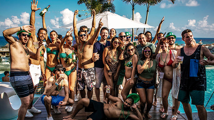 La emblemática terraza del Hotel Thompson Playa del Carmen se tiñó de verde para el festejo de St.Patrick’s Day. Pool Party, juegos y muchas sorpresas fueron transcurriendo durante todo el día, además de bebidas y platillos típicos, banda de rock en vivo, música celta, performers, para cerrar la fiesta bailando al ritmo del DJ residente.