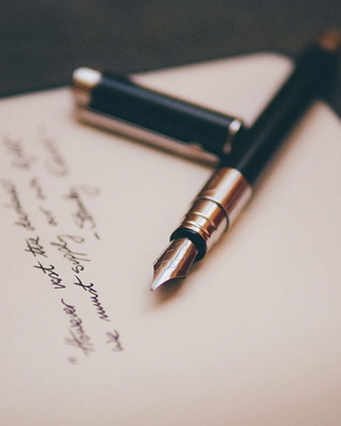 Se abre la toma en un plano cenital sobre una hoja de papel en blanco, la imagen se aleja y se aprecia una taza de café y una mano sosteniendo un bolígrafo.