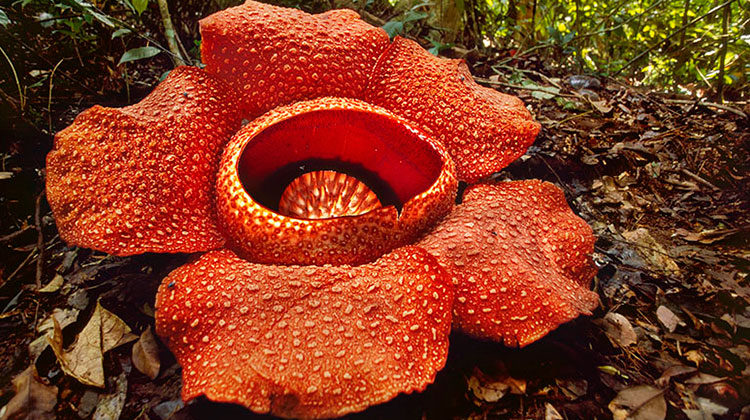 Endémica de Sumatra y Borneo, la rafflesia arnoldii es la flor más grande del mundo ya que puede alcanzar hasta casi 1 m de diámetro y pesar hasta 11 kg.