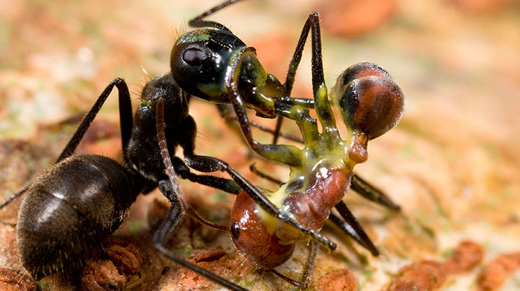 Descubiertas en las selvas tropicales del sudeste asiático haciendo lo máximo para defender a su familia, estas hormigas pueden hacer que sus cuerpos exploten en un intento por detener a los depredadores.