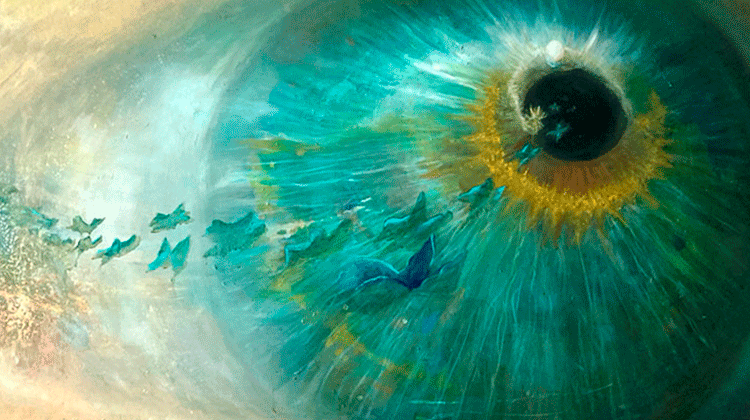 Si bien desde chica amaba dibujar, primero se desarrolló como Diseñadora. El arte se fue gestando conforme iba evolucionando en su consciencia. “Siempre fue y ha sido un disfrute, pero para poder avanzar en este caminar, tuve que poner a un lado ciertos parámetros adquiridos en mi carrera. En el diseño tomas en cuenta hacia dónde va dirigido tu mensaje, es un trabajo hacia afuera, en cambio el arte es un trabajo desde adentro para que sea honesto. Así que el viaje del recorrido interno ha sido intenso, expresarlo es lo divertido, lograr la congruencia entre lo que vives, piensas y plasmas. Primero pinté estampas cotidianas. Hace 25 años me enamoré de los colores en Oaxaca, luego me sumergí en el surrealismo, ya nadaba más hondo en mi ser, jugué mucho entre la geometría y el figurativo, pero aún no lograba soltar el control de la forma, hasta más recientemente que aunque sigo con formas son más sugeridas y sueltas en un entorno abstracto”.