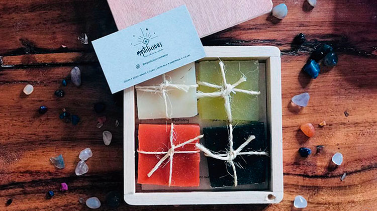 • Kit de 4 jabones veganos: 1 jabón de yerba mate (estimula la circulación de cuerpo y nos da energía para comenzar el día), 1 jabón de vino tinto (antioxidante), 1 jabón de aloe vera con caléndula (refrescante y calmante) y 1 jabón de almendras dulces (hidratante).