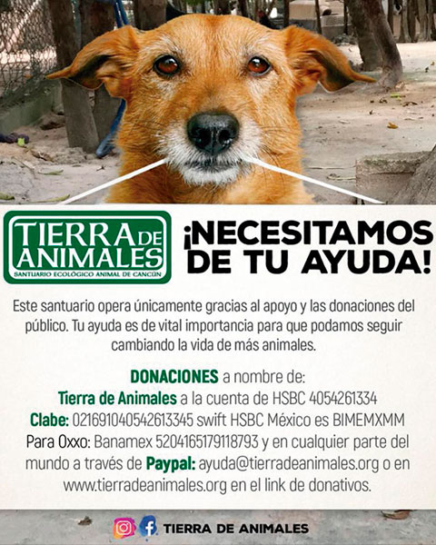 Tierra de Animales es un santuario ecológico ubicado en el poblado de Leona Vicario, a unos minutos de Cancún, que tiene como misión trabajar con fuerza y amor para salvar animales y darles una calidad de vida buena y digna. Su fundador, Ricardo Pimentel, quien con el apoyo de su familia comenzó con el proyecto desde hace más de 12 años, ha enfrentado diversas situaciones adversas, y ahora con la pandemia del COVID19, el reto de sostener el santuario se ha incrementado aún más.